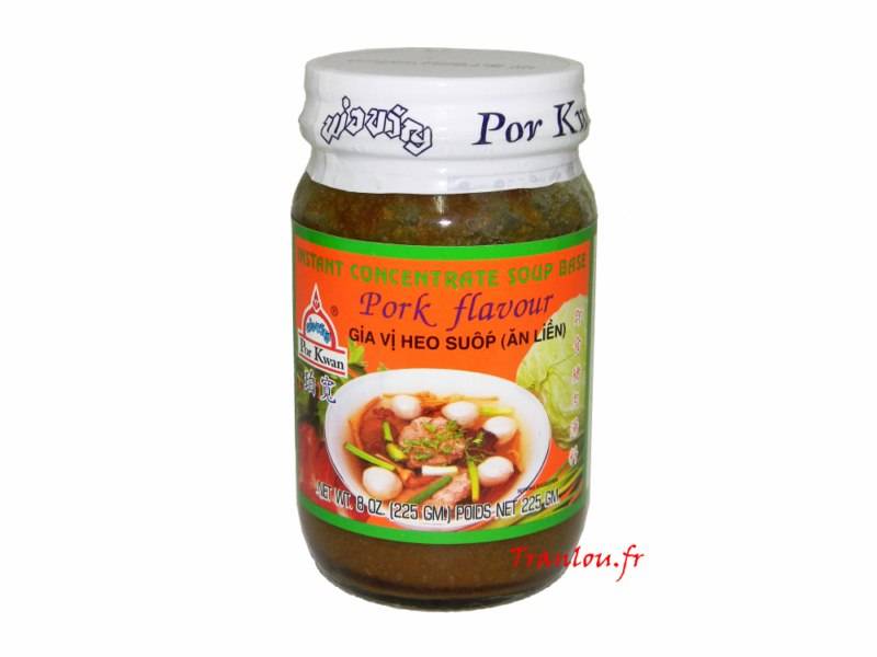 Assaisonnement pour soupe instantané (arôme porc), en bocal en verre refermable, de 225g.