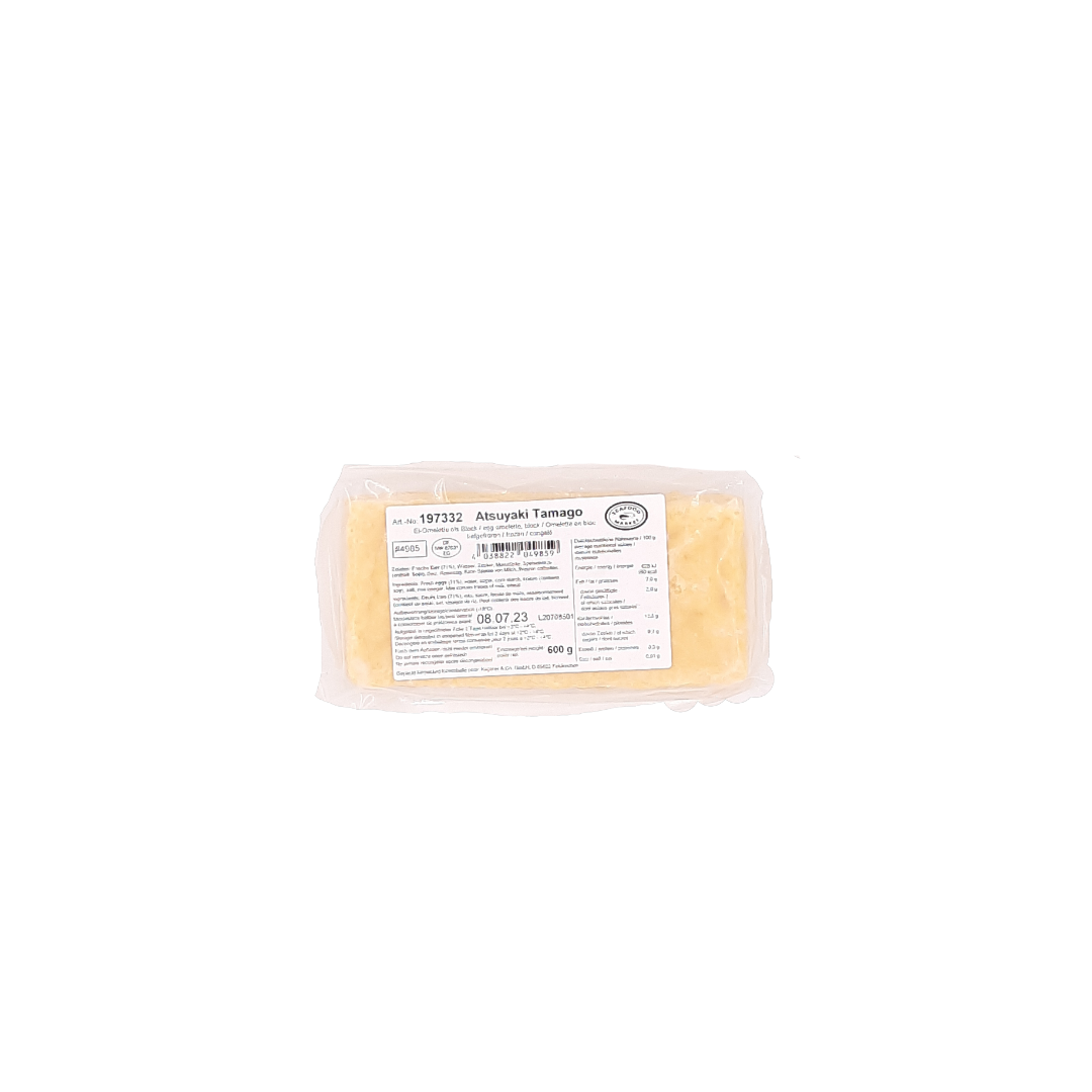 L'omelette roulée Atsuyaki Tamago, surnommée "tamagoyaki", est un classique de la cuisine japonaise. Il s'agit d'une recette sucrée-salée composée de plusieurs couches d’œufs cuisinées que l'on roule dans une poêle rectangulaire appelée "makiyakinabe". Au pays du soleil levant, ces omelettes sucrées sont servies au petit-déjeuner en accompagnement d'un bol de riz ou d'une soupe miso. Vous pouvez également ajouter les omelettes Atsuyaki Tamagos dans vos préparations de sushis nigiris. Au Japon, il existe plusieurs variantes de ce plat avec des textures et goûts différents. Ces omelettes japonaises de la marque SEAFOOD MARKET se dégustent généralement froides ou tièdes avec un peu de sauce soja.