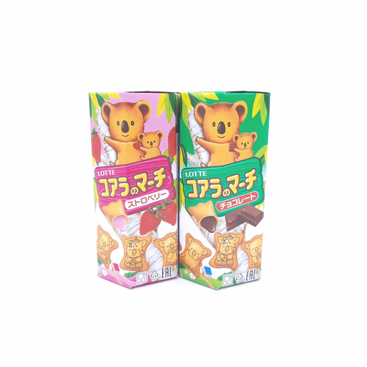 Les koala's march sont des petits biscuits fourrés et croquants en forme de koalas. Chacune de ces friandises est illustrée d'un petit koala mis en scène dans différentes situations. Les fourrages de ces koala's march sont très variés (vanille, banane, café etc) même si les plus populaires demeurent les koala's march fourrés à la fraise et ceux au chocolat. Toutes aussi amusantes que délicieuses, ces friandises asiatiques deviendront un incontournable de vos pauses goûter.