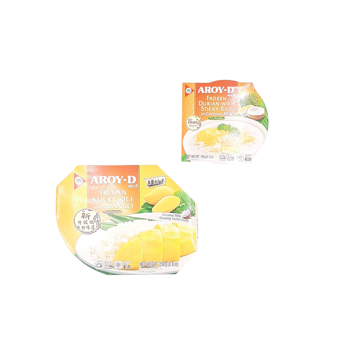 Nos riz gluants à la mangue ou au durian de la marque AROY-D sauront plaire à toute la famille.