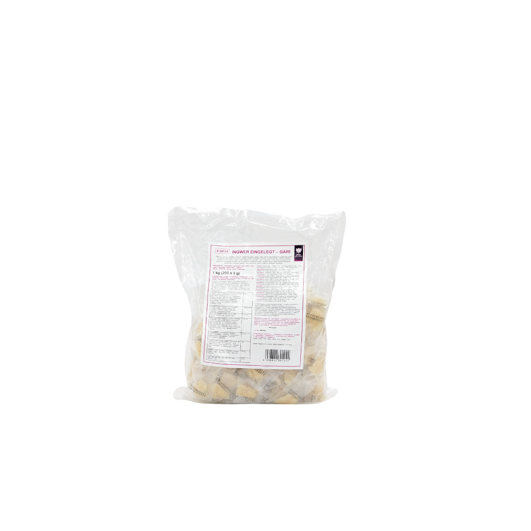 Le gingembre au vinaigre, appelé "gingembre gari", est un condiment originaire du Japon. Il s'agit en réalité de gingembre frais mariné dans du vinaigre de riz, du sucre et de l'eau. Traditionnellement, le gingembre gari se déguste en accompagnement de sushis afin de rafraîchir votre palais entre chaque bouchée. Il peut également accompagner des plats de riz, de viande rouge ou bien des salades. Avec ses saveurs acides et épicées, le gingembre gari allégera vos préparations grasses et atténuera certaines saveurs de certains poissons présents dans les sushis. Nous vous proposons également du gingembre gari blanc et rose en sachet.
