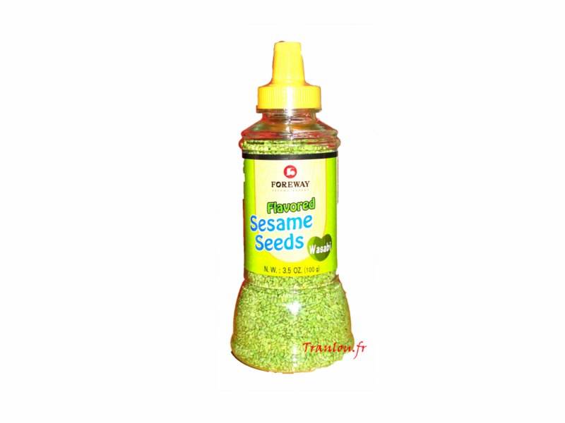 Ingrédients: graines de sésame, condiment, sel, sucre, arôme de wasabi, colorants( E160aii, E102 et E133).