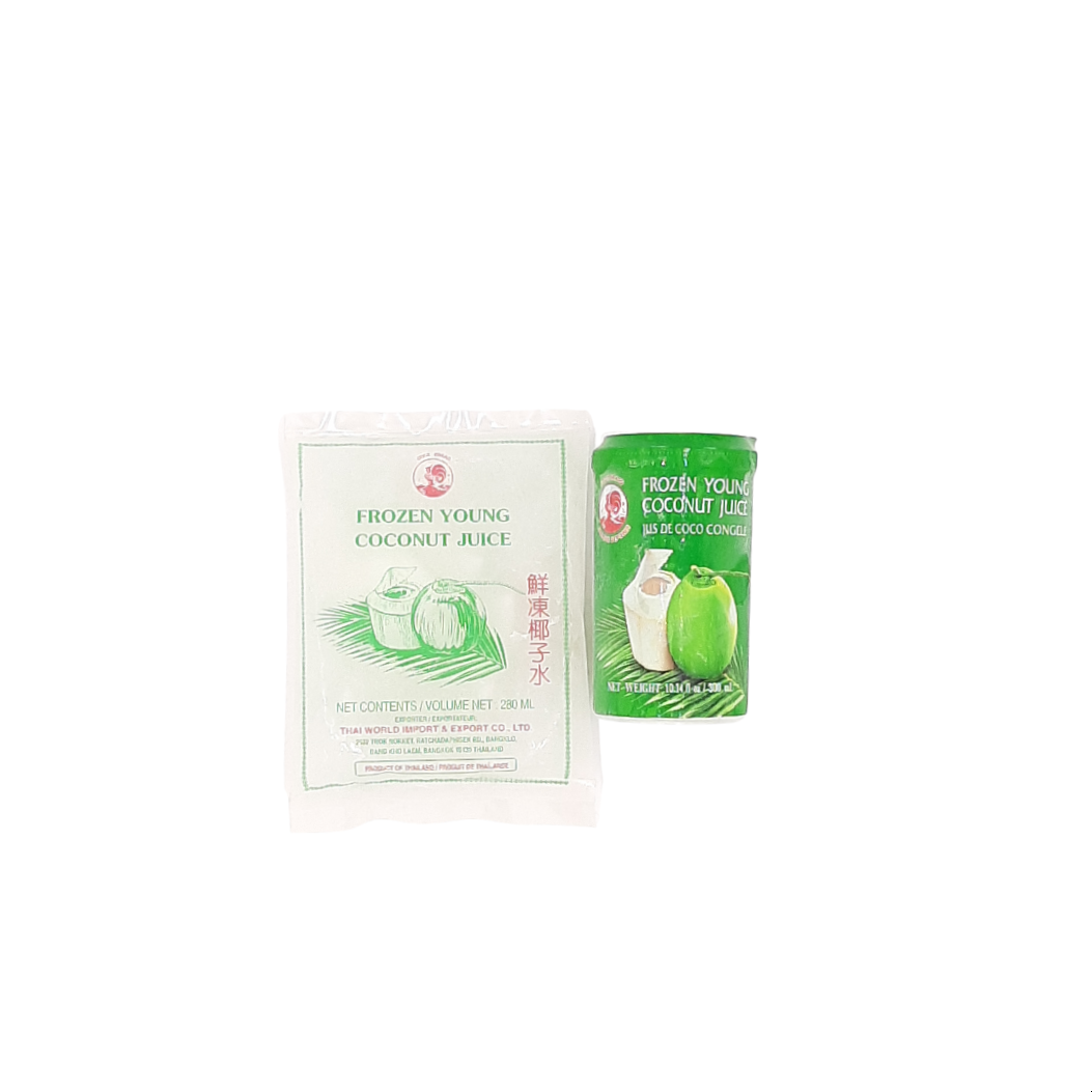 Le jus de coco, ou eau de coco, est une boisson désaltérante et rafraîchissante principalement consommée en Asie. Cette eau végétale provient du liquide contenu naturellement dans le fruit du même nom. Le jus de coco est souvent utilisé dans la préparation de recettes salées et sucrées asiatiques. Il est également possible de consommer l'eau de coco telle quelle comme une boisson. Nos jus de coco congelés de la marque COCK contiennent des morceaux de noix de coco ce qui apporte du croquant et une touche de gourmandise à cette boisson,