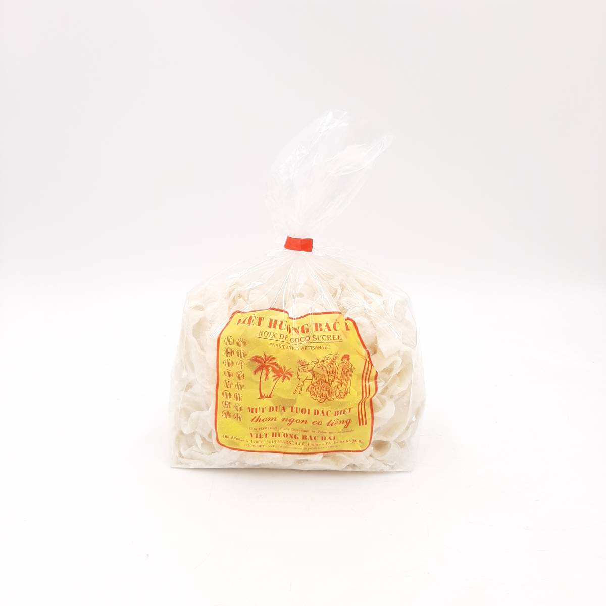 La noix de coco confite est une friandise très appréciée en Asie du Sud-Est, tout particulièrement au Vietnam. Riche en saveurs, la noix de coco confite peut être savourée seule ou en accompagnement d'une tasse de thé de votre choix. Cette friandise vietnamienne peut également être ajoutée à vos mélanges de fruits secs ainsi qu'à vos cakes de fruits confits. Traditionnellement, la noix de coco confite est dégustée lors du nouvel an chinois.