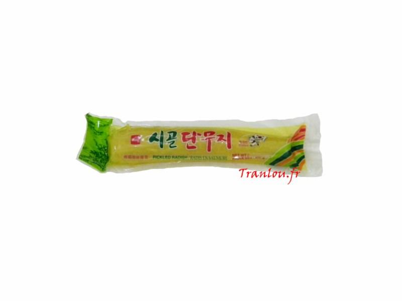 Ingrédients : radis, eau, sel, acide acétique, acide citrique, aspartame, glycine, sorbate de potassium (conservateur), lutéine (E161b).